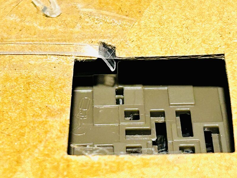 輸送の衝撃が原因か定かではありませんが絶縁シートのプラスチックが途中で割れてしまっており、